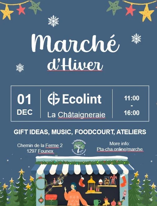 We’ll be participating in several Christmas markets in Switzerland this year - Eysins, St Maurice and Etoy! Check out the fliers below for all the details. Hope to see you there!